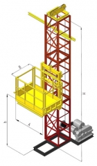 Для подъёма и подачи через проём внутрь здания или на крышу различных грузов. Мачта подъёмника собирается из секций и крепится к перекрытию или стене здания специальными захватами. Допускается выход людей на платформу для погрузки (выгрузки). Для этого платформа блокируется за перекрытие или проём специальным выдвижным устройством. По желанию клиента подъёмник поставляется с выкатной платформой.