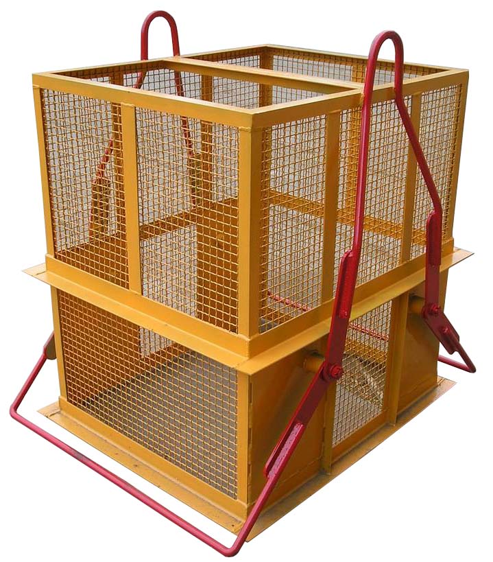 Захват опорный ЗО-09.00.00.000, застропованный за две петли краном, подается к месту складирования кирпича. Монтажник наводит захват на поддон с кирпичом, опускает его, не доводя до уровня земли 80-100 мм, освобождает упоры и фиксирует их на поддоне.